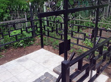 Металлическая ограда и кресты с бетонной плиткой